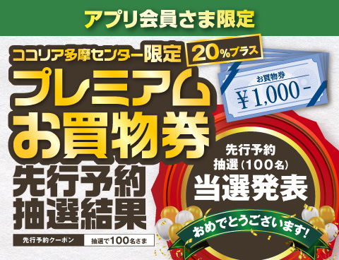 アプリ会員向け抽選会・当選者の発表です!