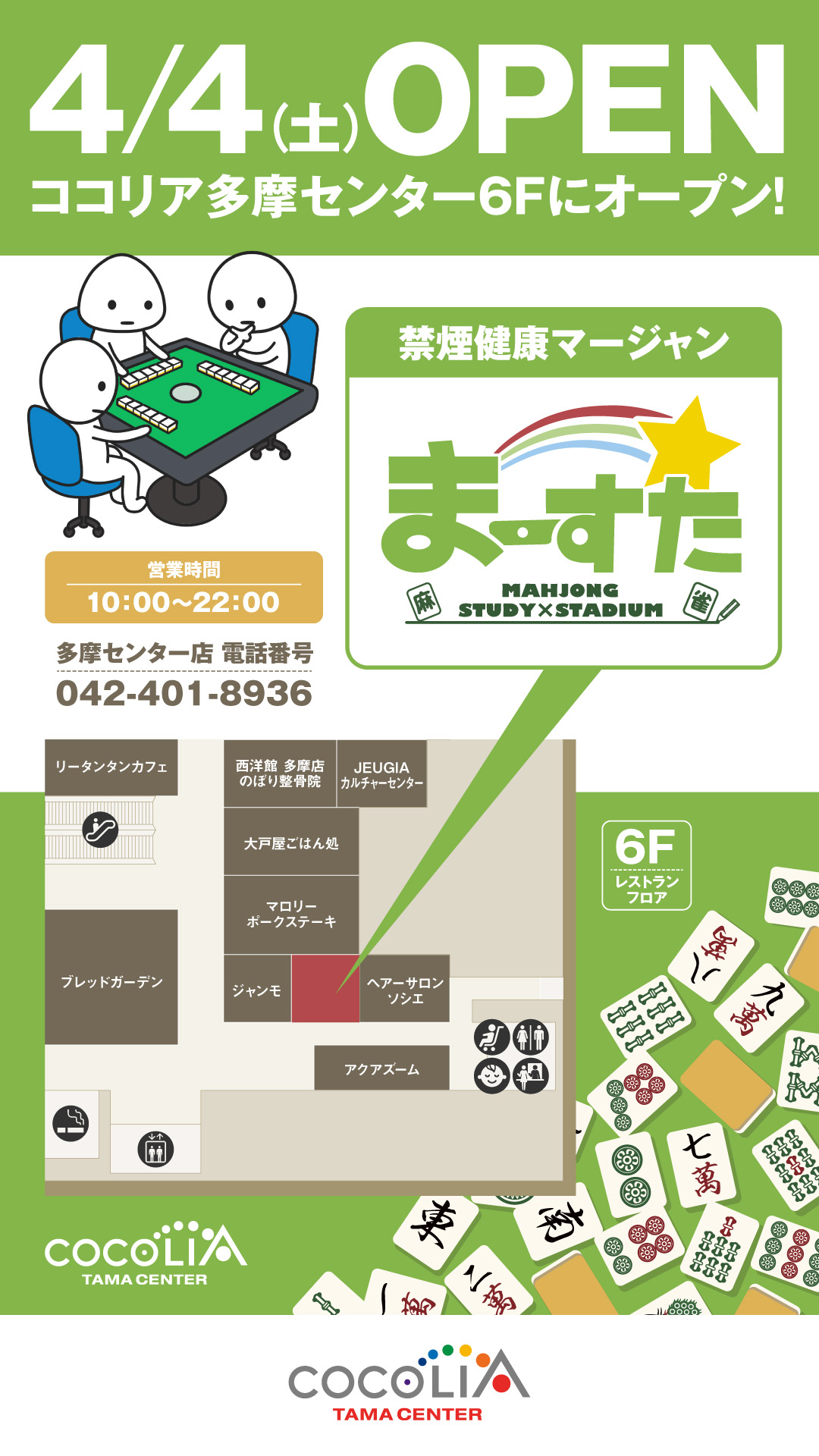 「禁煙健康マージャン まーすた多摩センター店」4/4㈯ 6Fにオープン!