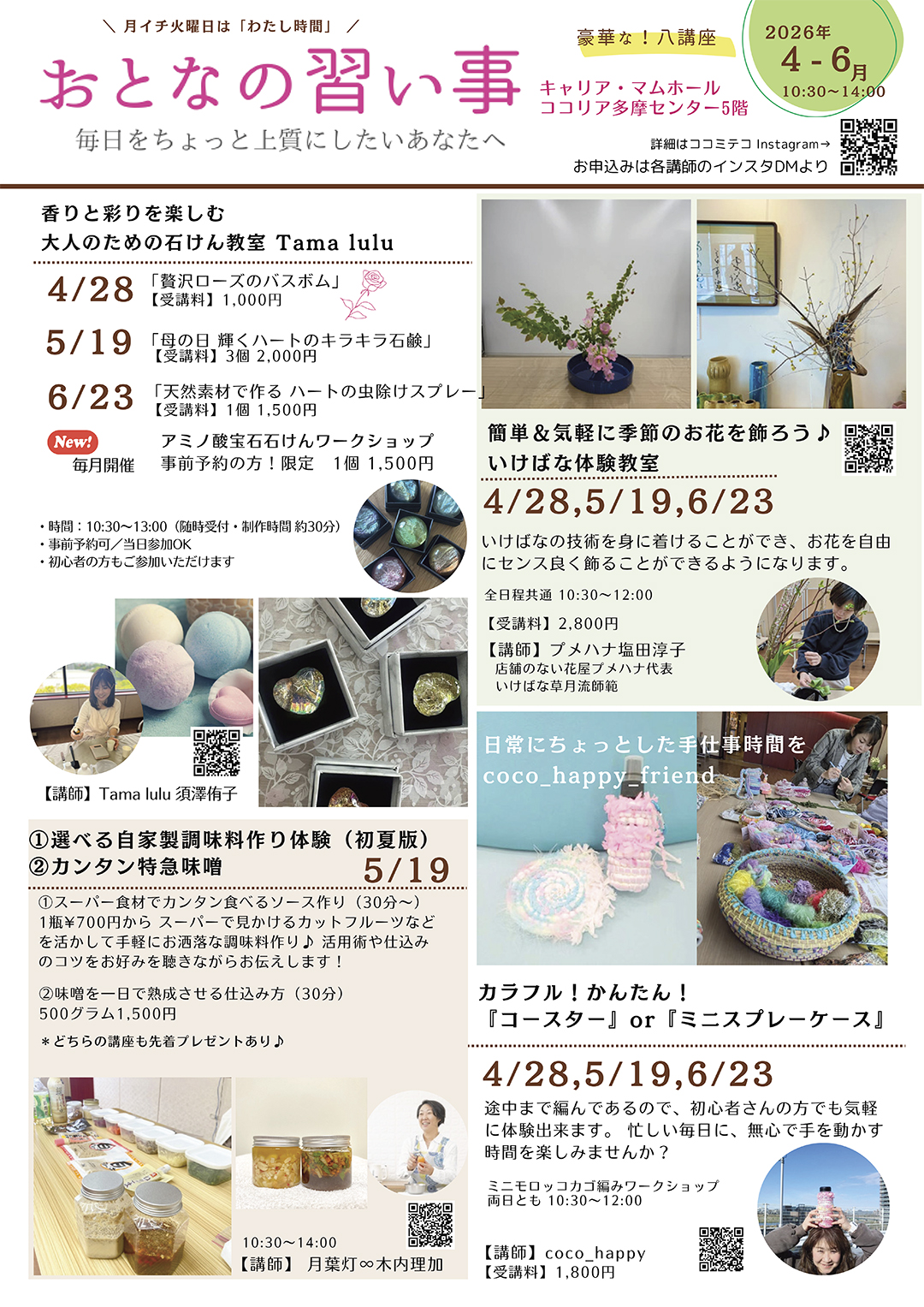 おしごとカフェ内、キャリア・マムホームにて【おとなの習い事】を開催。